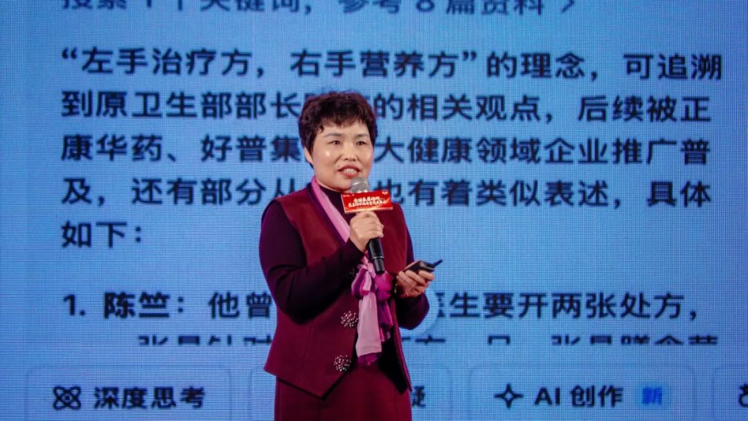 医养标杆甜豆医生进行了主题为《医养结合的临床应用与感悟》的分享,"缺乏一种营养,产生多种疾病;营养一个细胞,减少多种疾病。"她通过大量临床案例验证了这一理念,她认为医养结合不是简单的“治疗 营养”,而是以细胞营养为核心,实现疾病预防、治疗、康复的全周期管理,真正践行“上医治未病”的理念。