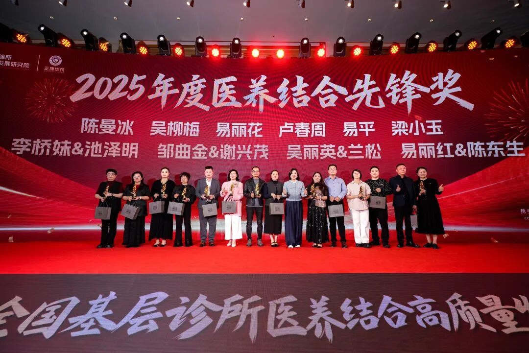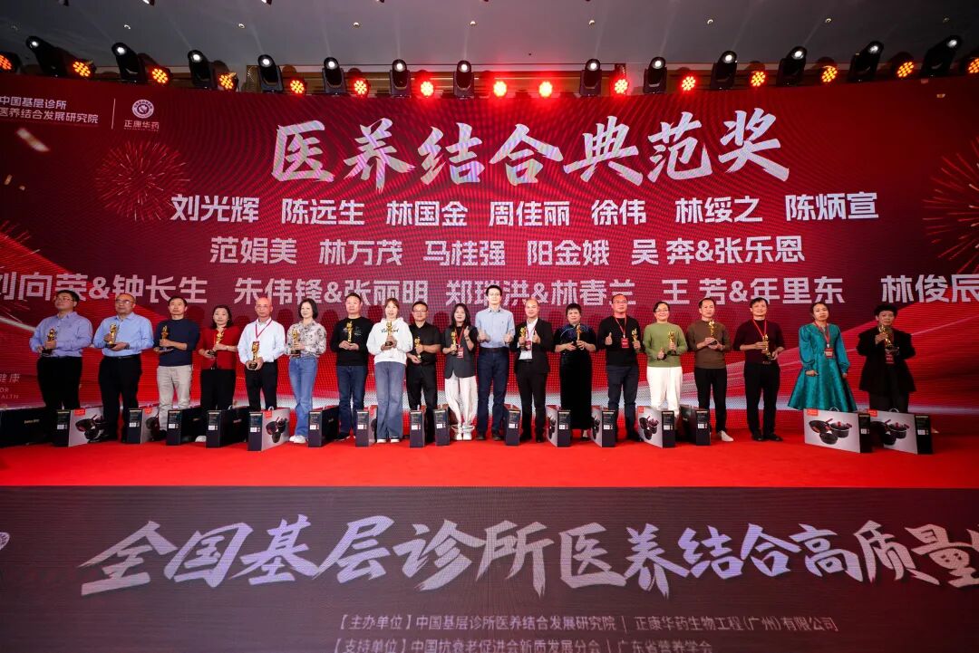 "2025年度医养结合典范奖",他们对推动基层诊所高质量发展贡献了很大的力量,让左手治疗方,右手营养方走进千家万户,树立了典范。他们是:刘光辉,陈远生、林国金、周佳丽、徐伟、林绥之、陈炳宣、范娟美、林万茂、马桂强、阳金娥、刘向荣与钟长生事业伙伴、吴奔与张乐恩伉俪、朱伟锋与张丽明伉俪、郑瑞洪与林春兰伉俪、王芳与年里东伉俪、林俊辰与金余伉俪,由中山大学公共卫生学院教授郭城教授颁奖。