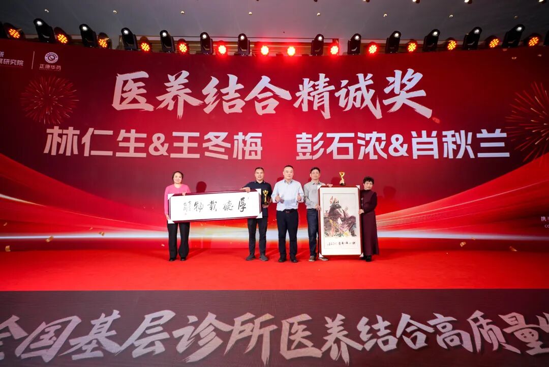 "2025年度医养结合精诚奖",以一方名医的仁心仁术,深耕基层,用医养结合正规ag捕鱼王平台的解决方案守护万家健康,行业内赢得了极高的口碑与影响力,与正康华药使命,立足基层医疗,弘扬济世仁心,不谋而合。他们是:林仁生与王冬梅伉俪、彭石浓与肖秋兰伉俪,由中国抗衰老促进会新质发展分会会长、国家卫健委干部培训中心原副主任、国家卫健委党校原副校长李勇军先生颁奖。