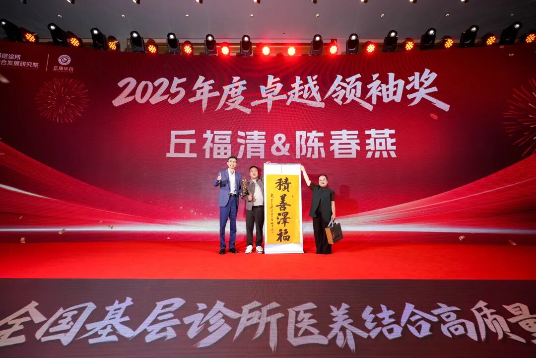 "2025年度卓越领袖奖"他们与团队风雨同舟,共担忧患,获得大家的信任与追随,以卓越的领导力和战略眼光,带领团队不断突破,成就非凡!他们是:丘福清与陈春燕伉俪,由正康华药董事长梁新锋先生颁奖。